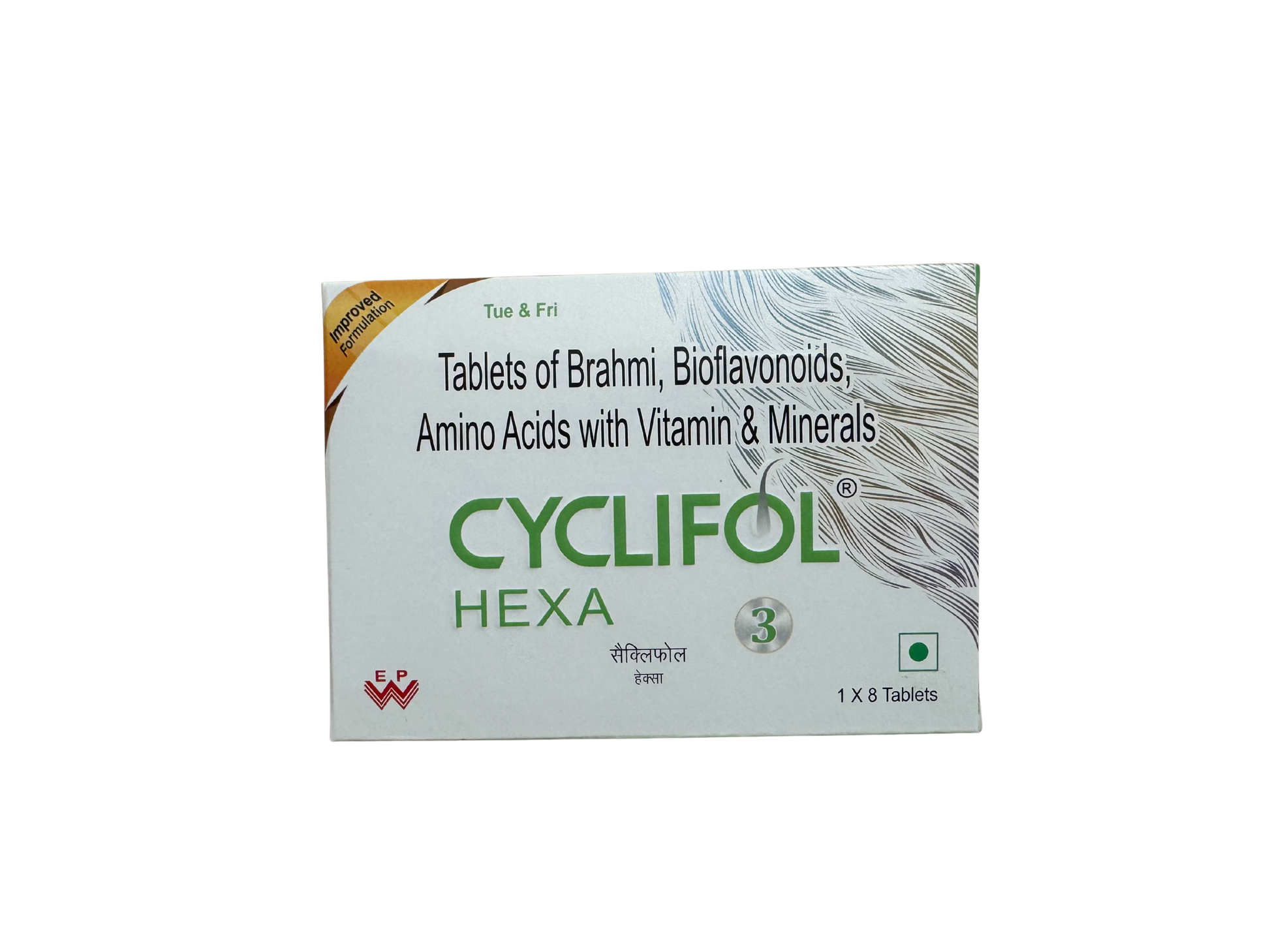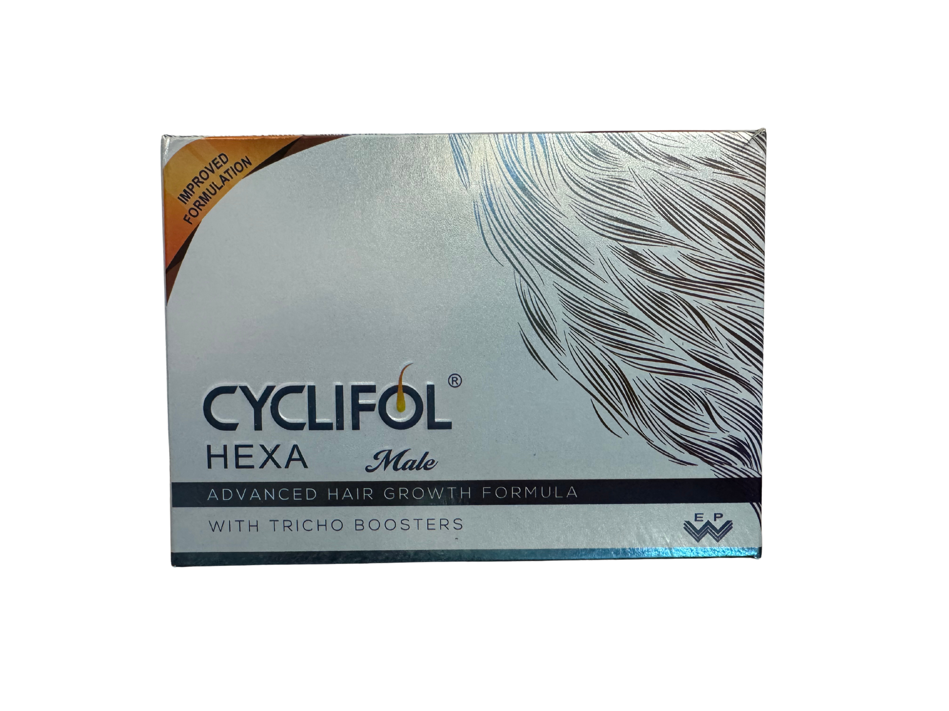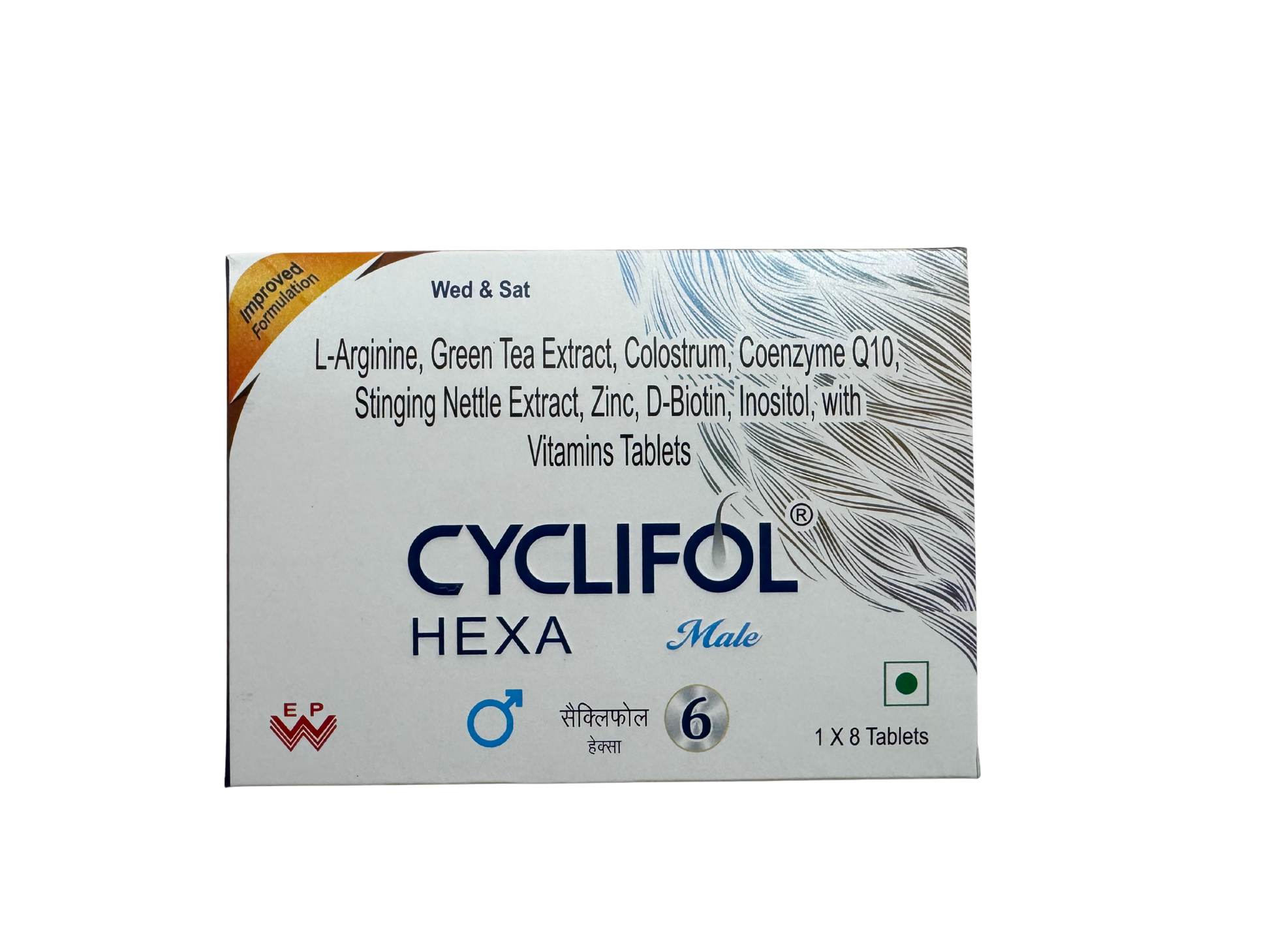 Cyclifol Hexa Male बालों के झड़ने को रोकने और बालों के घनत्व में वृद्धि के लिए ईस्ट वेस्ट फार्मा द्वारा विकसित किट को विशेष रूप से डिज़ाइन किया गया है।