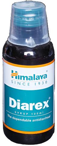 Himalaya Diarex Syrup, का पैक:- 100 ml सिरप की 1 बोतल, विपणित/निर्मित: Himalaya Drug Company, निर्माता का पता:-Makali, बेंगलुरु, KA, 562 162, भारत