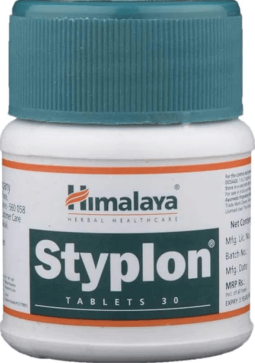 Himalaya Styplon टैबलेट, पैक:- 30 टैबलेट की 1 बोतल, मार्केटेड/निर्मित: Himalaya Drug Company, निर्माता का पता:-Makali, बेंगलुरु, KA, 562 162, भारत