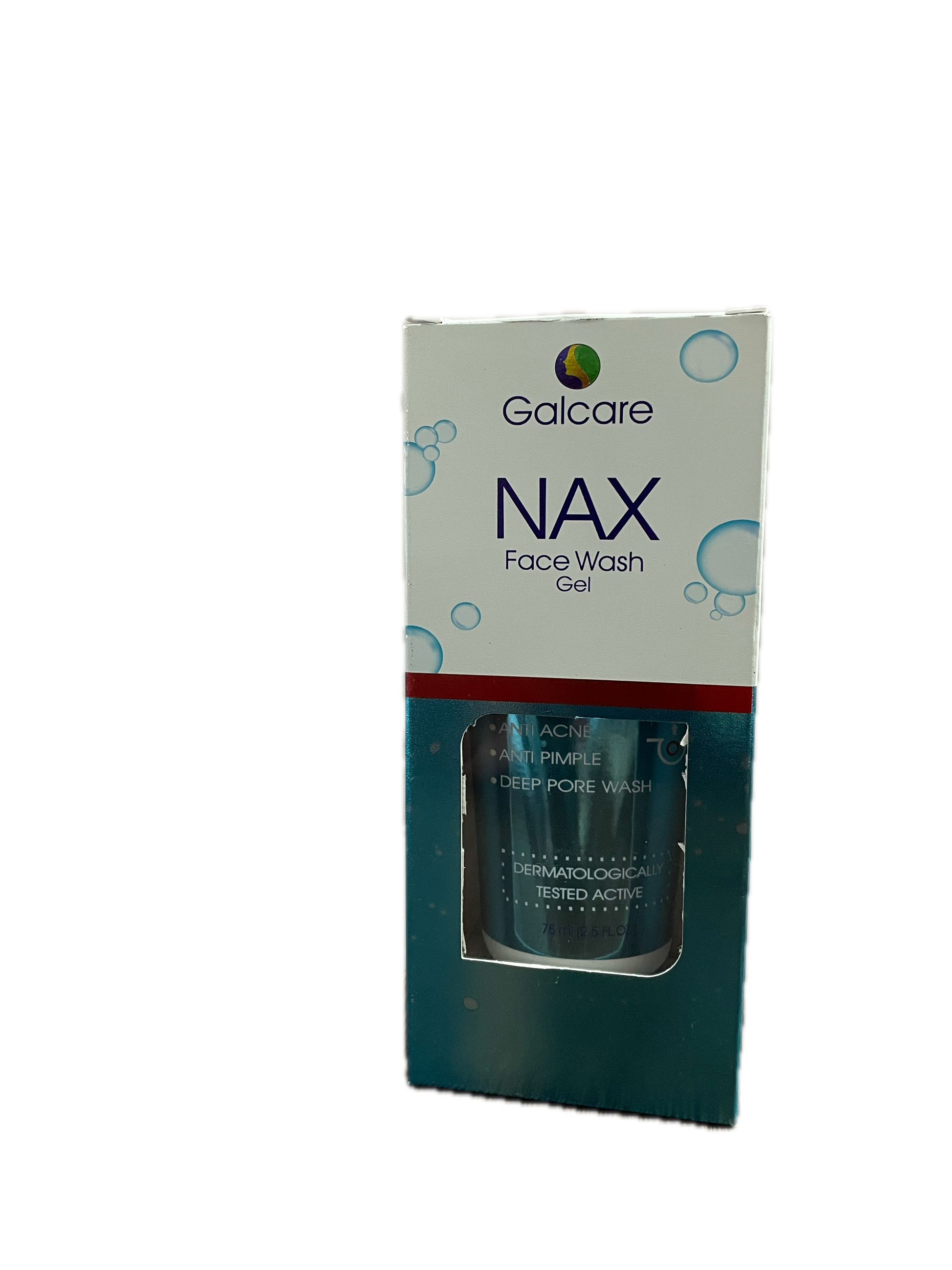 Nax फ़ेस वॉश पैक ऑफ़:- 1 ट्यूब ऑफ़ 75 ml फ़ेस वॉश निर्माता/विपणन पता:-Galcare Pharmaceutical Pvt Ltd