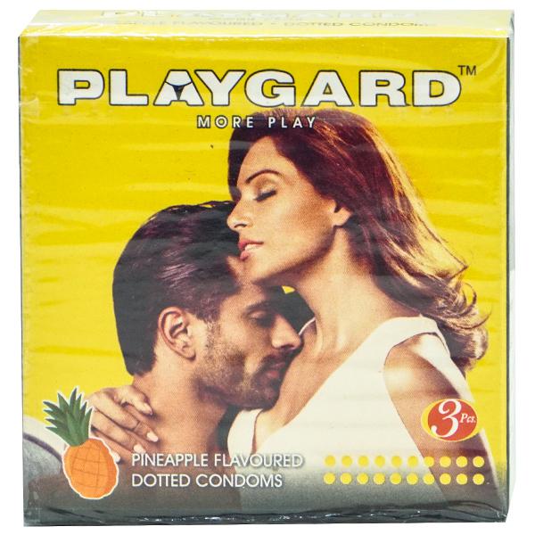 Playgard डॉटेड कंडोम पाइनएप्पल का पैक:- 3 कंडोम के 2 पैकेट (न्यूनतम) निर्माता/विपणक का पता:-Alkem Laboratories Ltd, मूल देश: भारत