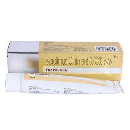 टैक्रोवेरा-ऑइंटमेंट नमक की संरचना:- टैक्रोलिमस (0.03% w/w) का पैक:- 1 ट्यूब में 10 ग्राम उपयोग:-एटोपिक डर्मेटाइटिस का उपचार निर्माता/विपणक का पता:-अल्केम लेबोरेटरीज लिमिटेड,एल्केम लेबोरेटरीज लिमिटेड, देवाशीष बिल्डिंग, एल्केम हाउस , सेनापति बापट रोड, लोअर परेल, मुंबई - 400 013।