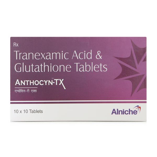 Anthocyn-TX Tablet is a combination of two medicines used in the treatment of melasma (brown colored patches on the face). It helps in reducing the amount of skin-darkening pigment called melanin in the skin. It also lightens the darkened skin patches and spots and helps in the detoxification of the skin.