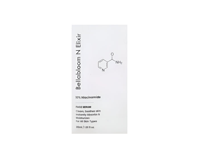 Bellacos Healthcare Bellabloom N Elixir 10% Niacinamide Face Serum is a lightweight, fast-absorbing formula designed to target and diminish visible signs of uneven skin tone, texture, and blemishes.