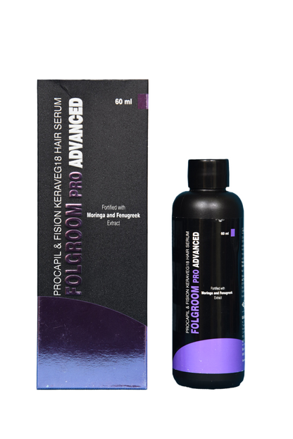 Folgroom Pro Advanced Hair Serum offers the synergistic effect of procapil,fusion,keraveg 18,fortified with moringa and fenugreek extract,